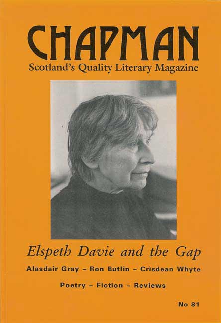 An in-depth look at the life and work of Elspeth Davie. ‘Notes on the Short Story’ (useful to all fiction writers) journal extracts, short stories and essays by Davie; in ‘A Universe of One’s Own?’ Marina Spuntas explains Davie’s narrative method of ‘the gap’ Fiction by Alasdair Gray, Ann Lingard, John Saul, Paula Fitzpatrick and Penny Glenday; poetry from Shanta Acharya, Criìsdean Whyte, Ron Butlin, Tom Pow and others.