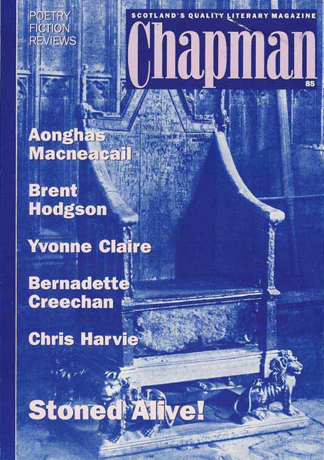Michael Forsyth’s announcement that the Stone of Scone (or Destiny) was to return to Scotland surprised most people. “It is alarming how ignorant most Scots are about their own history”, says John Ritchie and Robert Brydon’s humorous but critical view of this long-awaited ‘relocation’, ‘Shadow of a Dream’. aonghas macneacail’s poem ‘lia fàil’ and an update by John Hamilton of the famous ‘Wee Magic Stane’ song also record the Stone’s impact on Scotland. Brent Hodgson and Hamish Wallochie’s ‘daft’ Scots poems contrast with Donald Murray’s stories about Scottish life as seen by Gorbachov and J Edgar Hoover! New work by George Bruce, W N Herbert, Yvonne Claire, Jenni Daiches, Peter McCarey etc.
