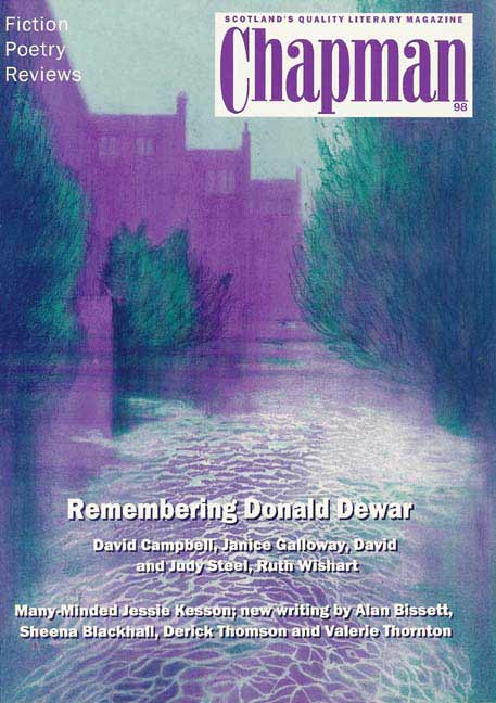 Donald Dewar’s sudden death shocked Scotland. Writers sent in poems and appreciations spontaneously, so we commissioned more. We remembers the man who helped establish our devolved Parliament. Poetry and memoires from art and book-dealers who fed his passions for these, and friends, colleagues, as well as writers: David Campbell, Janice Galloway, Anne Lorne Gillies, Donald Smith, Maureen Sangster, David and Judy Steel and Ruth Wishart.